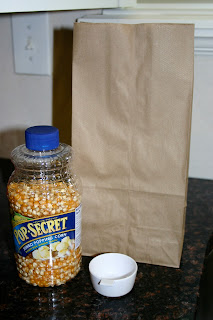 STEP ONE: Put 1/4 cup popcorn kernels in the brown paper lunch sack.
