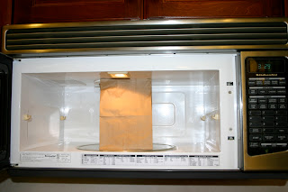 STEP FOUR: Start the microwave on high and listen carefully. Mine usually takes around 2-3 minutes, but every microwave is different. Just listen and stop it when there is 2 or 3 seconds between each pop. Don’t let it go too long, or it will burn.